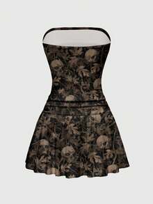 J-Fashion Sexy Vintage Branch Skeleton Bodycon Ruched A-Line Dress For Women