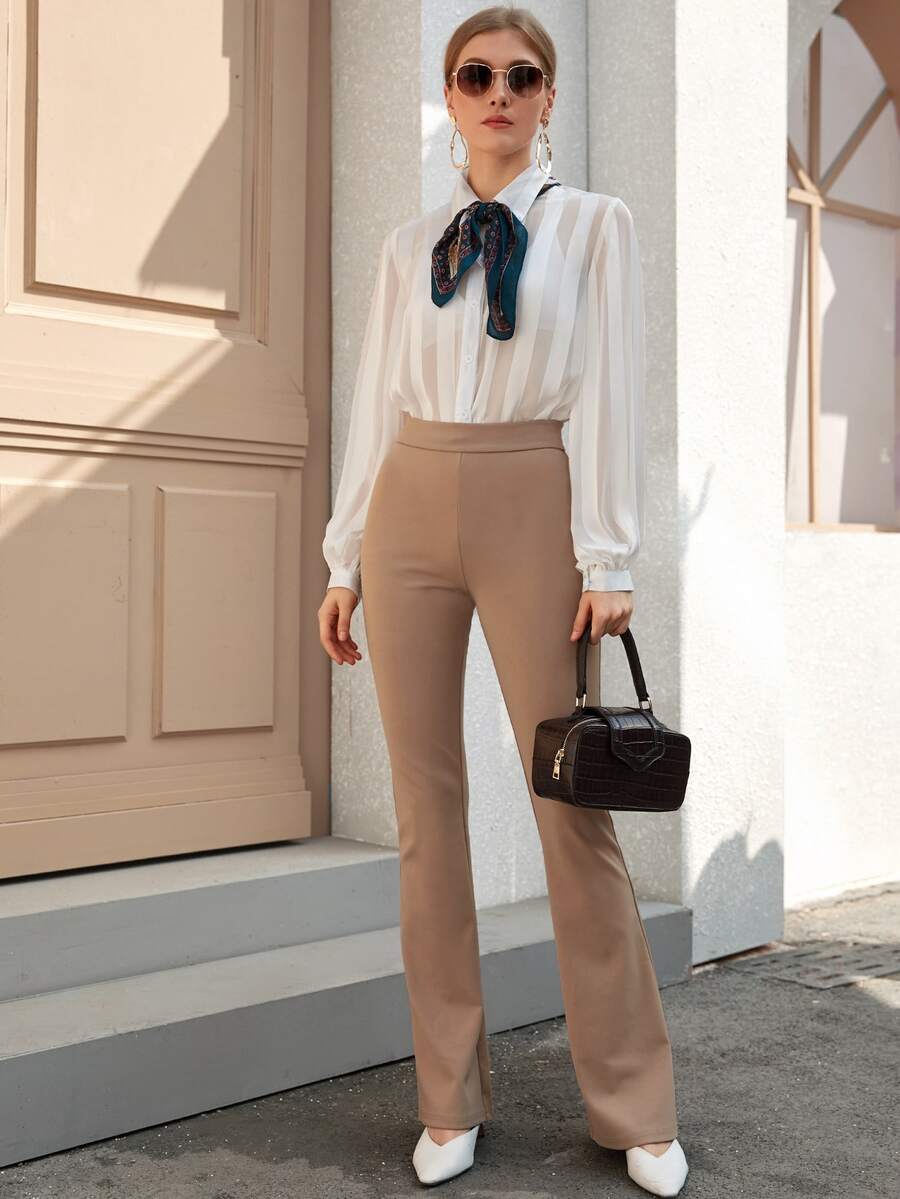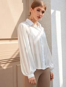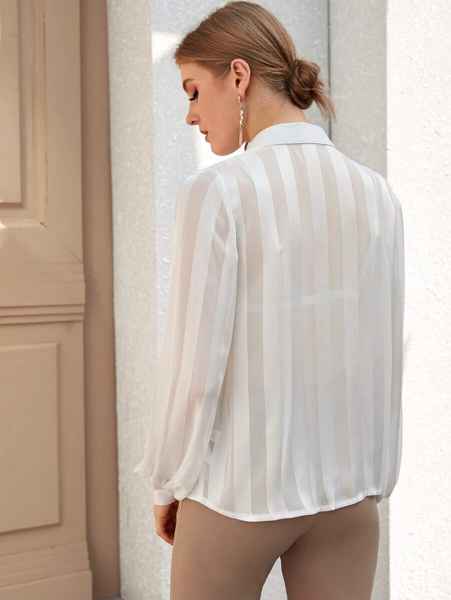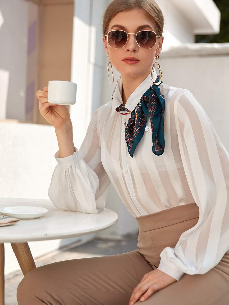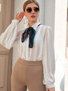 Sheer Satin Shirt Without Skinny Scarf
