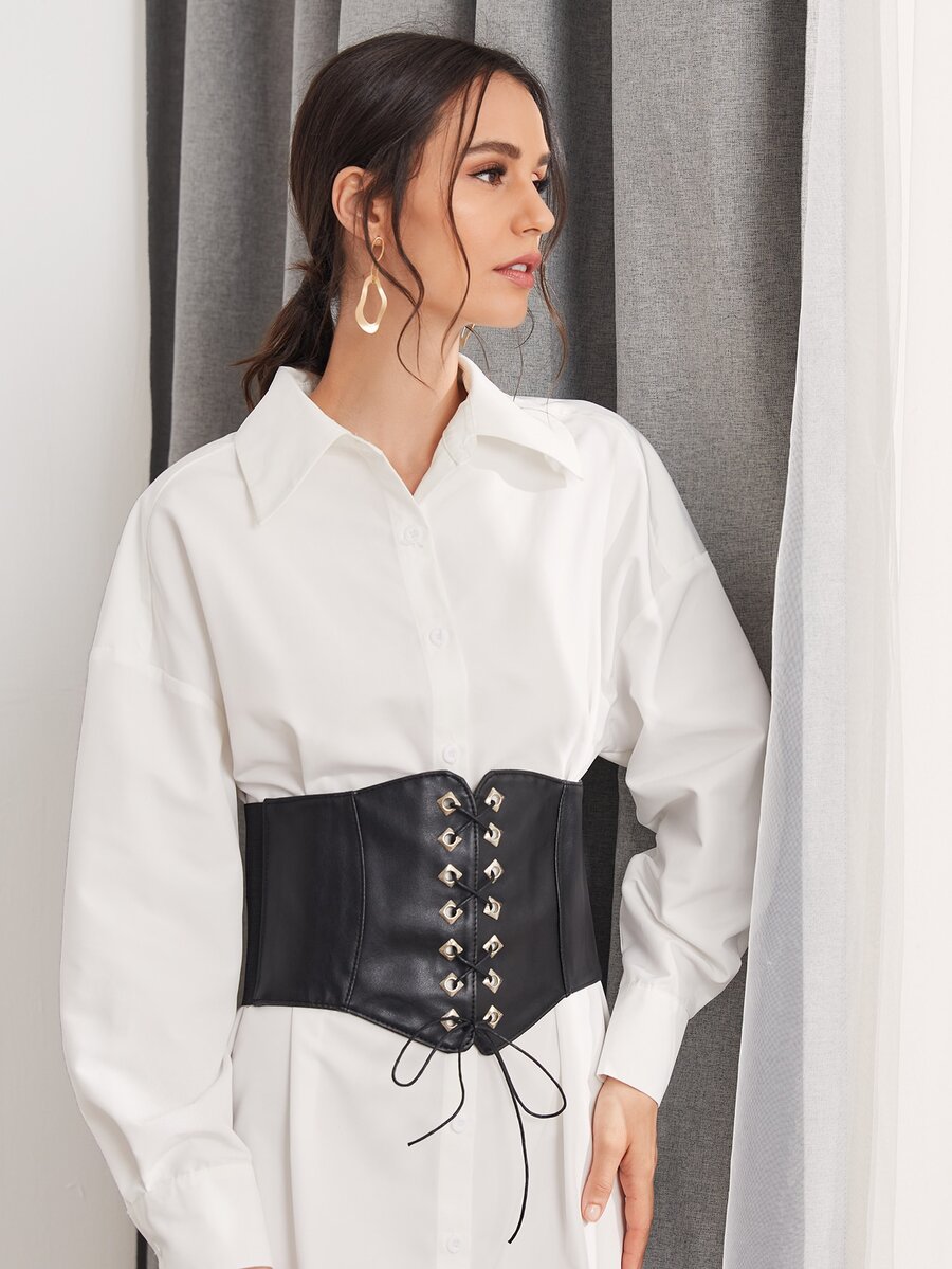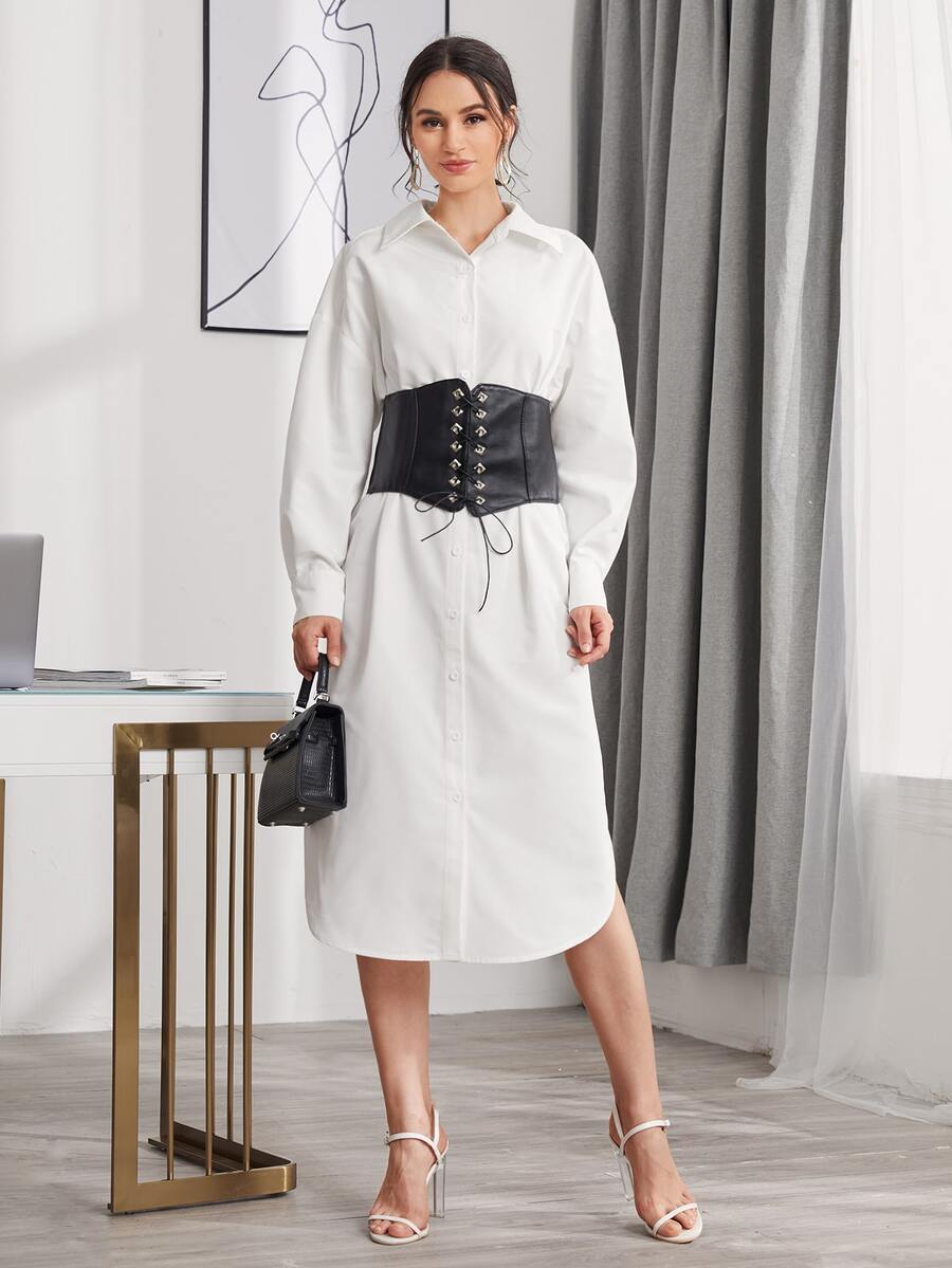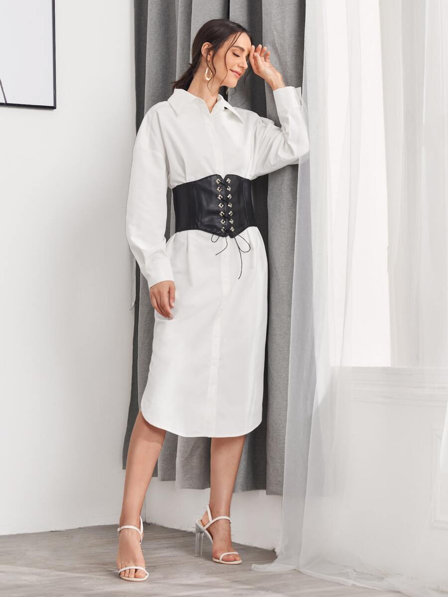 Shirt Dress With Lace Up Corset