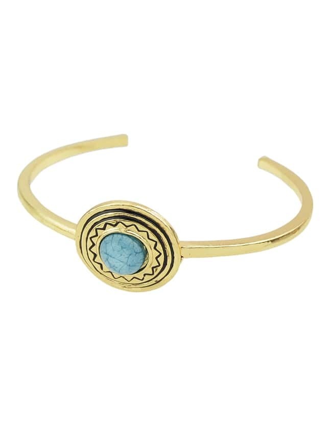 Simple Design Gemstone Blue Metal Cuff Bracelet