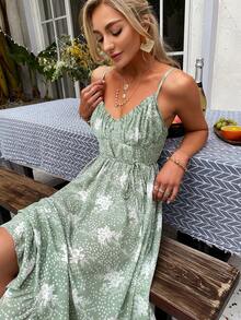 Simplee Ruffle Hem Belted Floral Cami Dress