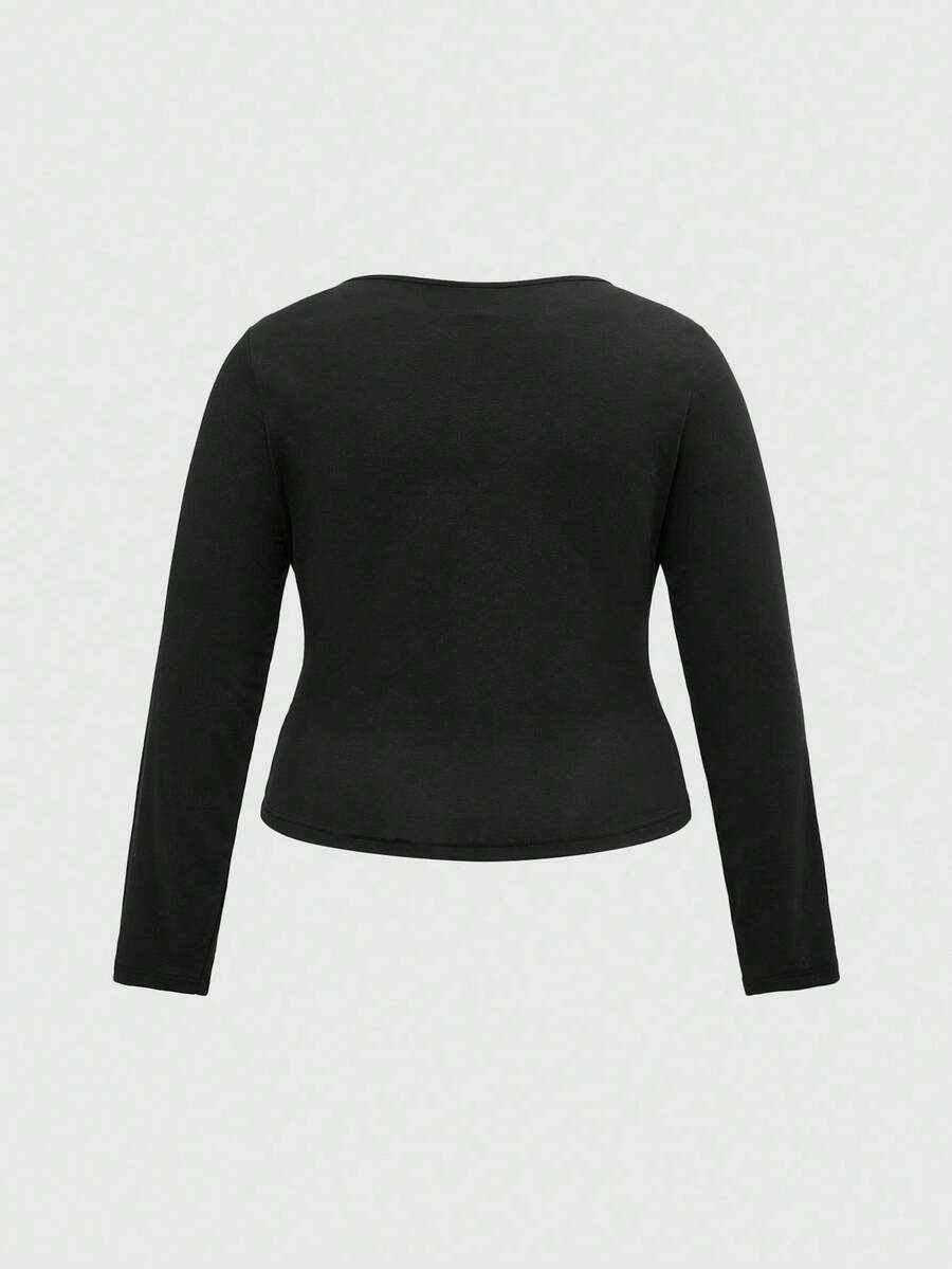 Goth Skeleton Bone Dark Mysterious Horror Sexy Slim Fit Cropped Mini Stretchy Black Round Neck Plus Size T-Shirt