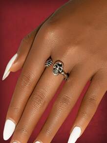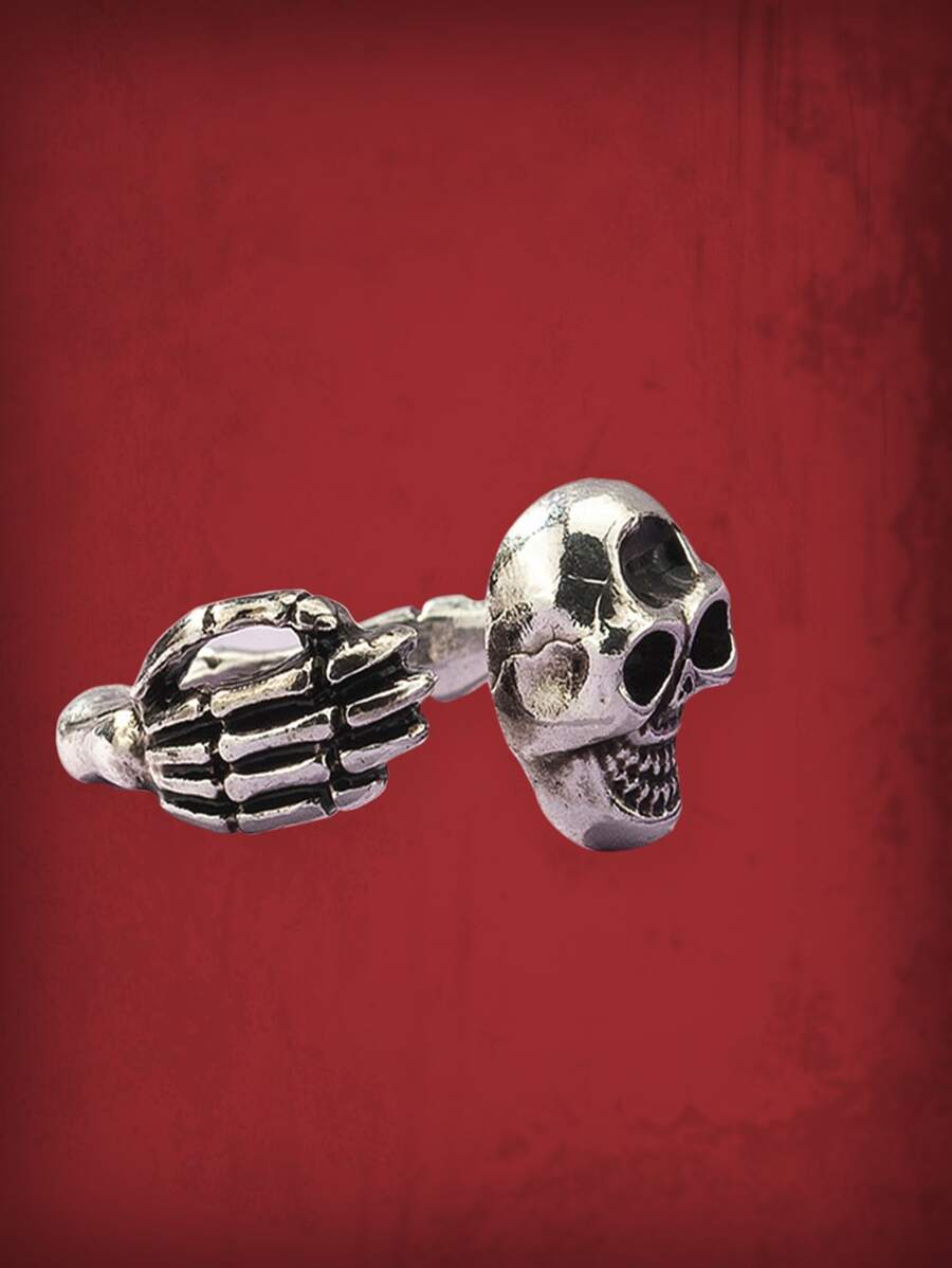 Grunge Punk Skeleton Hand & Skull Decor Cuff Ring