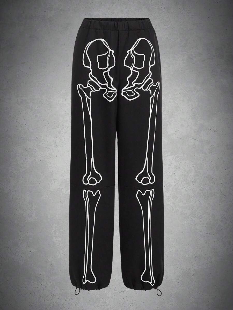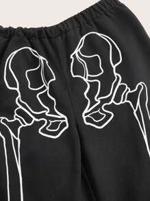 Skeleton Print Pants Without Belt