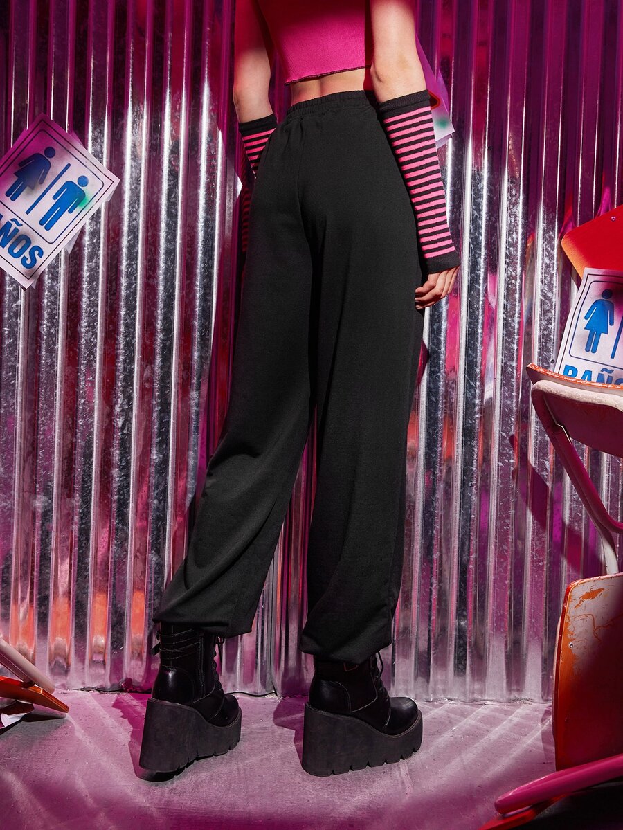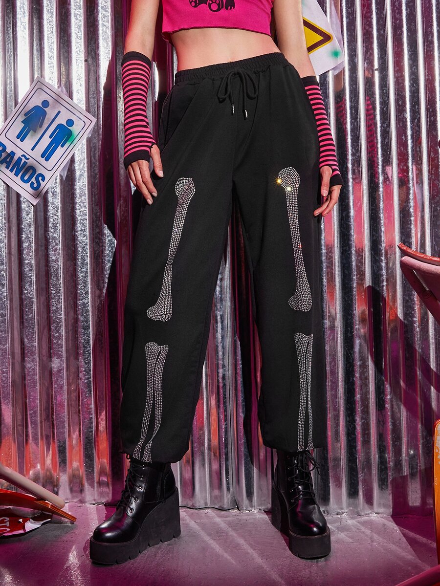 Skeleton Rhinestone Drawstring Waist Sweatpants