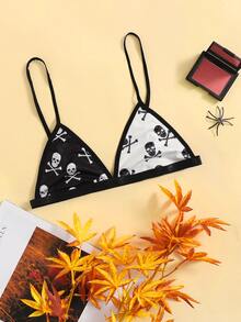 Skull Print Colorblock Bralette