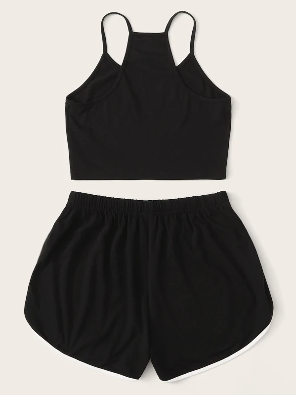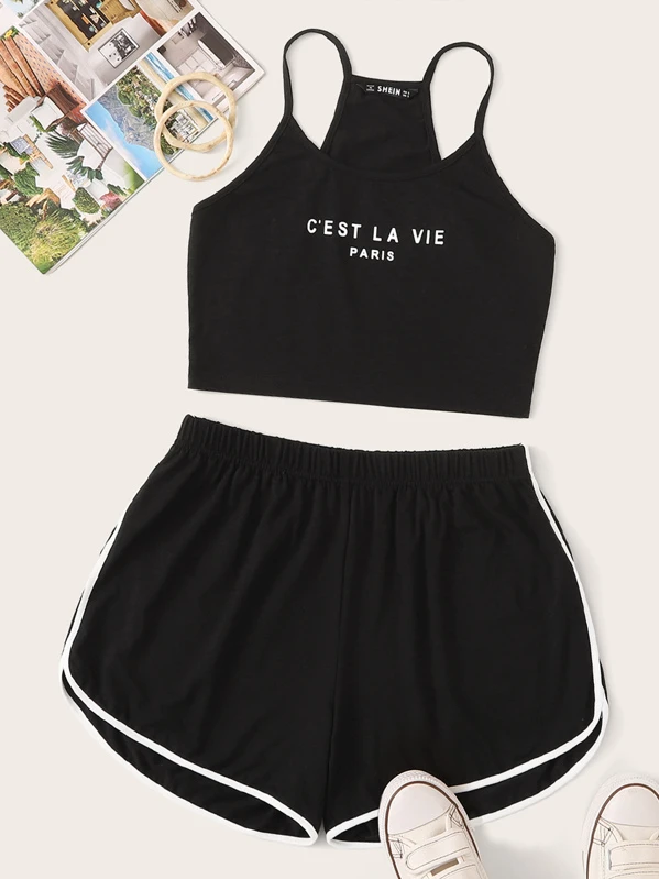 Slogan Graphic Cami Top & Dolphin Shorts Set