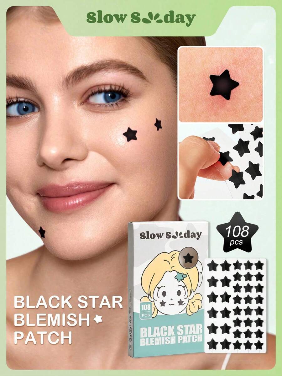 SlowSunday Black Star Blemish Patch, 108pcs, Cute Black Star-Shaped, Hydrocolloid Materials, Ultra-Thin Design, Full Cover, Waterproof & Breathable, Refreshing & Comfortable, Mild & Non-Irritating, For Pre-Makeup And Daily Care, Better Coverage, For Face & Body, For Covering Zits And Blemishes Pimple Patches, Y2K, Great For  Dating, Birthday, Anniversary, Or Any Special Occasion, For Christmas's Day Holidays, Christmas Party, Christmas Gift
