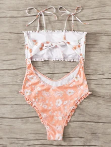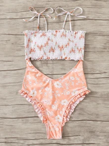Smocked Frill Trim Peekaboo One Piece Swimsuit