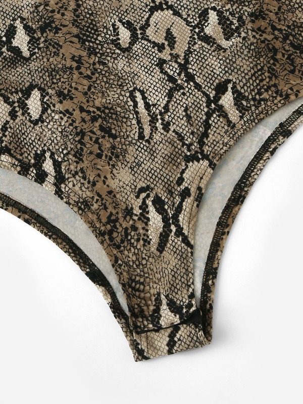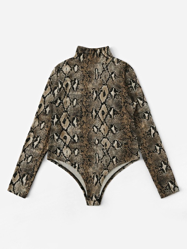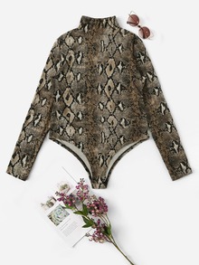 Snake Skin Print Stand Collar Bodysuits