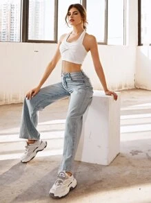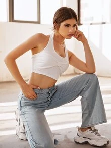 Solid 2 In 1 Halter Top