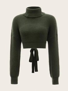 Solid Backless Tie Back Sweater