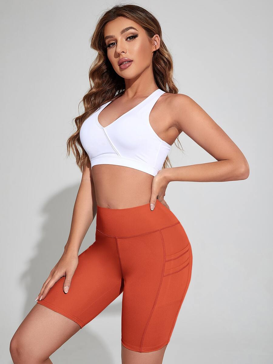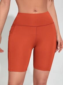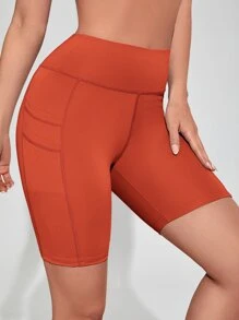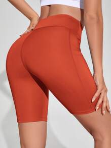 Solid Biker Shorts With Phone Pocket