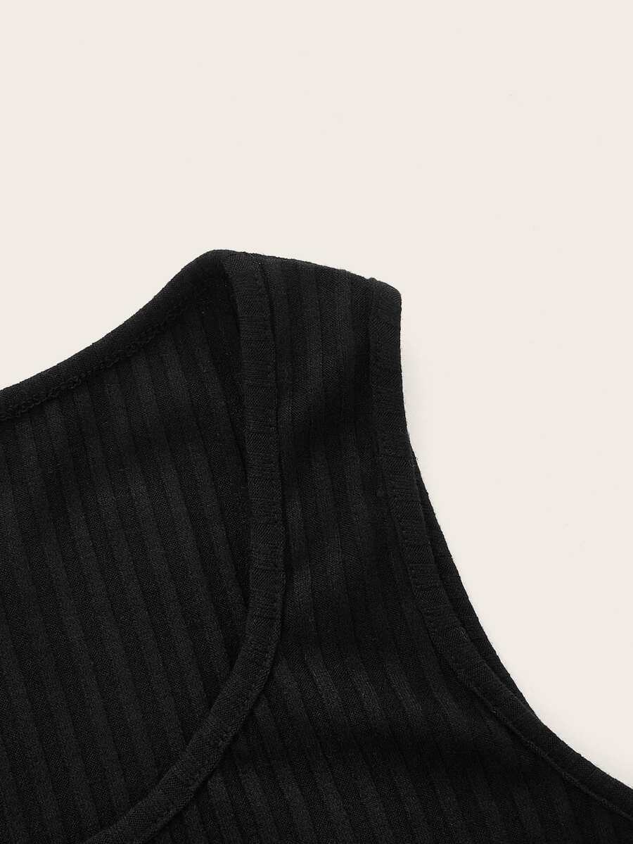 Solid Button Front Ribbed Tank Top