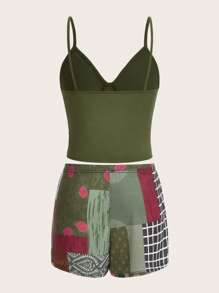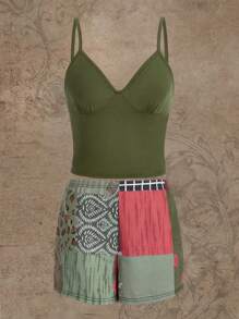Hippie Solid Cami Top & Patchwork Print Shorts