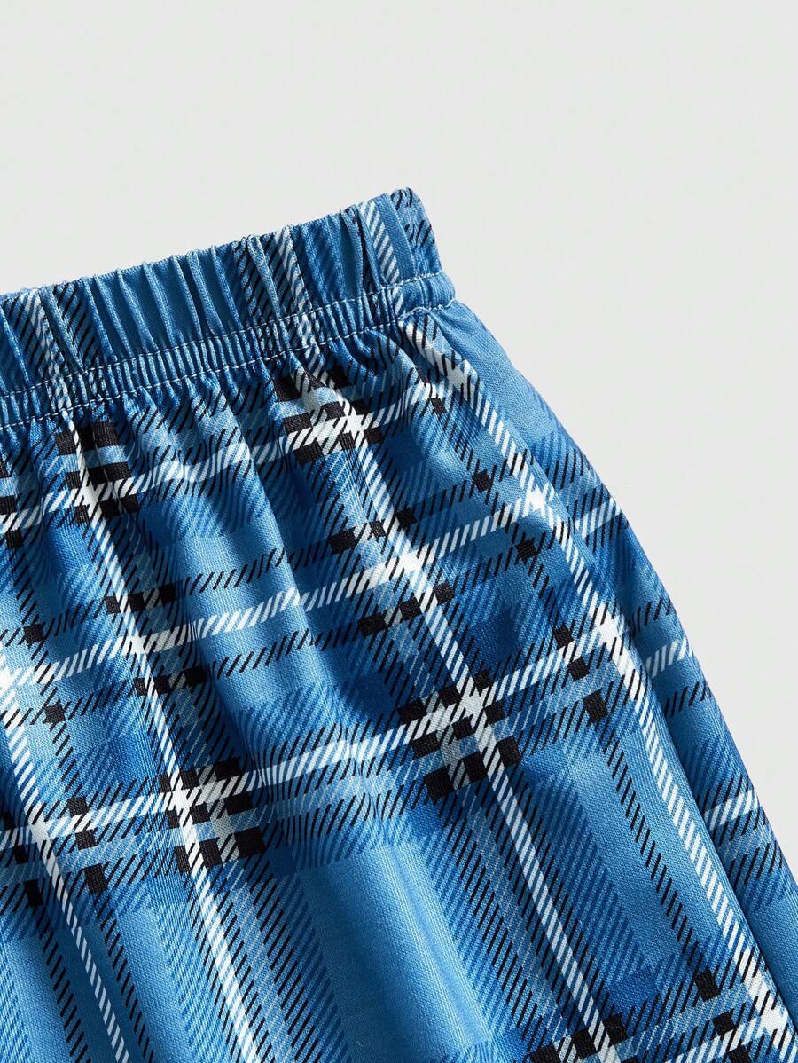 Solid Color Vest Top And Plaid Shorts Casual Sleepwear Set, School