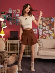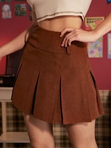 Solid Corduroy Fold Pleated Skirt