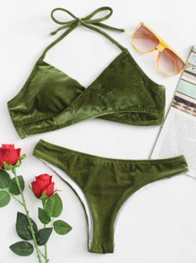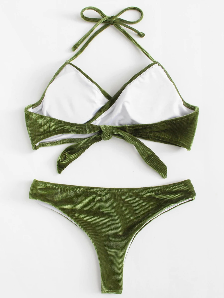Solid Corduroy Wrap Bikini Set