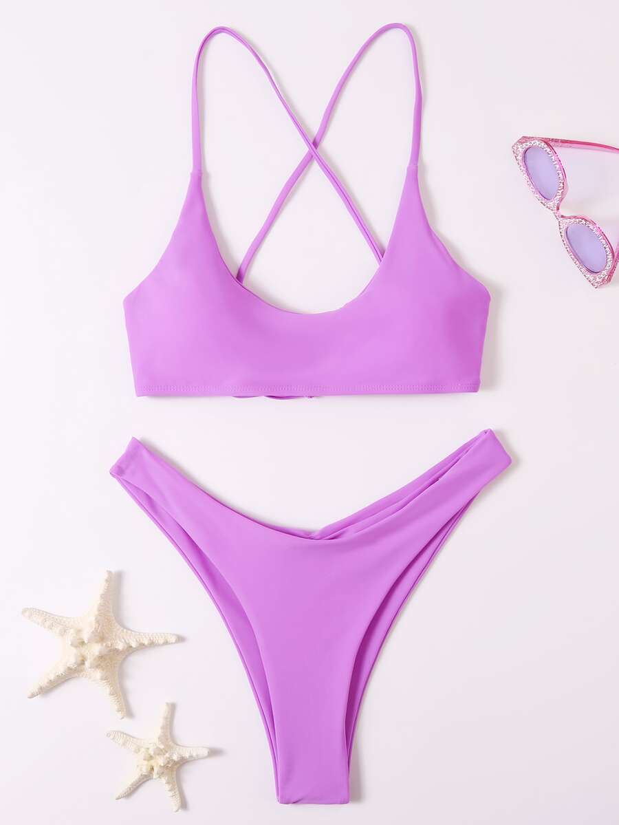 Solid Criss Cross High Waist Bikini Set