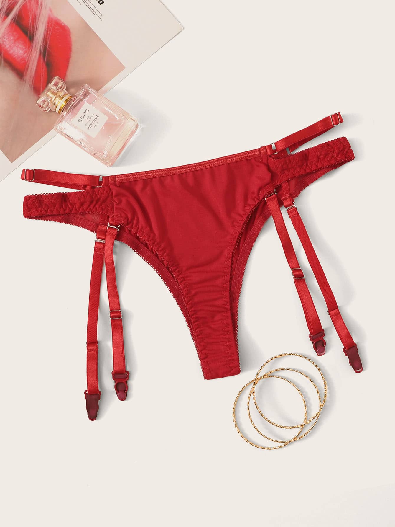 Solid Cut Out Garter Panty