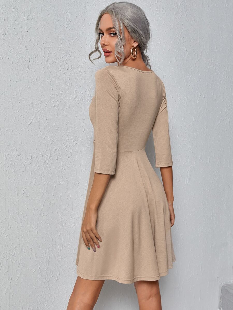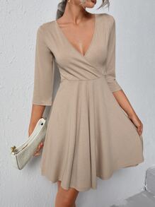 Solid Deep Plunging Neck Dress