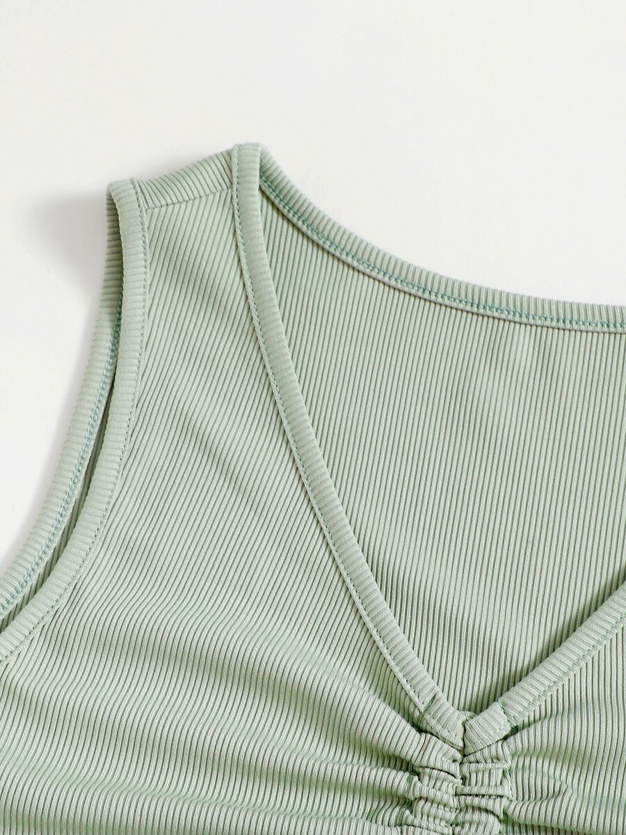 Solid Drawstring Ruched Cut Out Tank Top