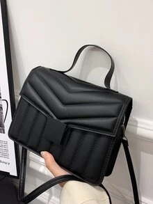 Solid Flap Satchel Bag