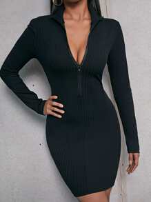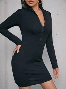 Solid Half Zip Bodycon Dress