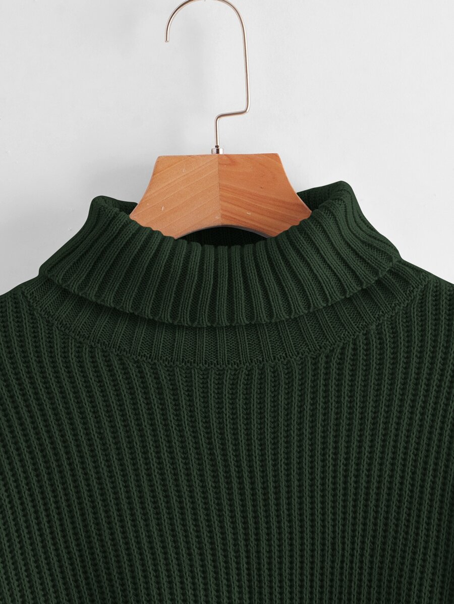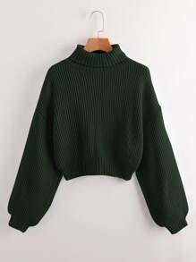 Solid High Neck Lantern Sleeve Sweater, School,Long Sleeve Tops