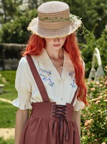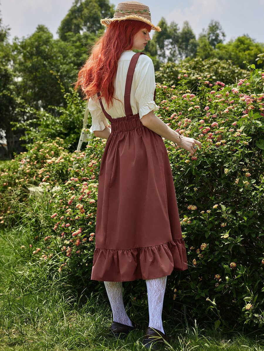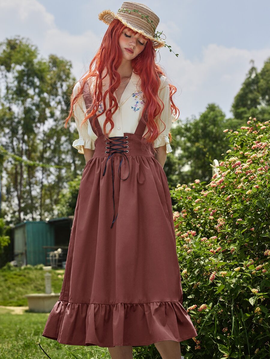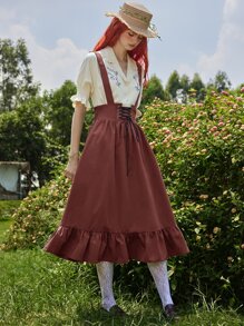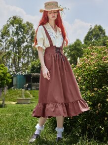 Fairycore Solid Lace Up Ruffle Hem Pinafore Skirt