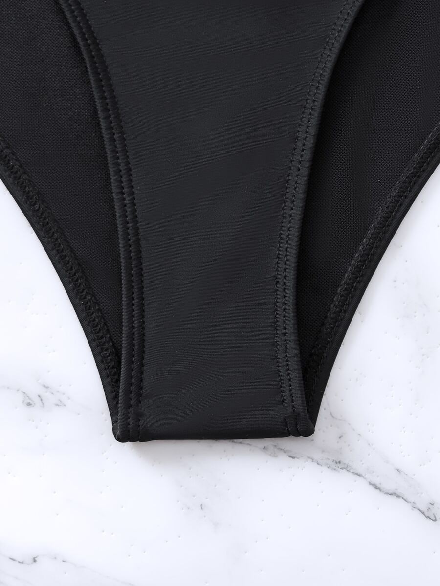 Solid One Shoulder Bikini Set For Summer Beach