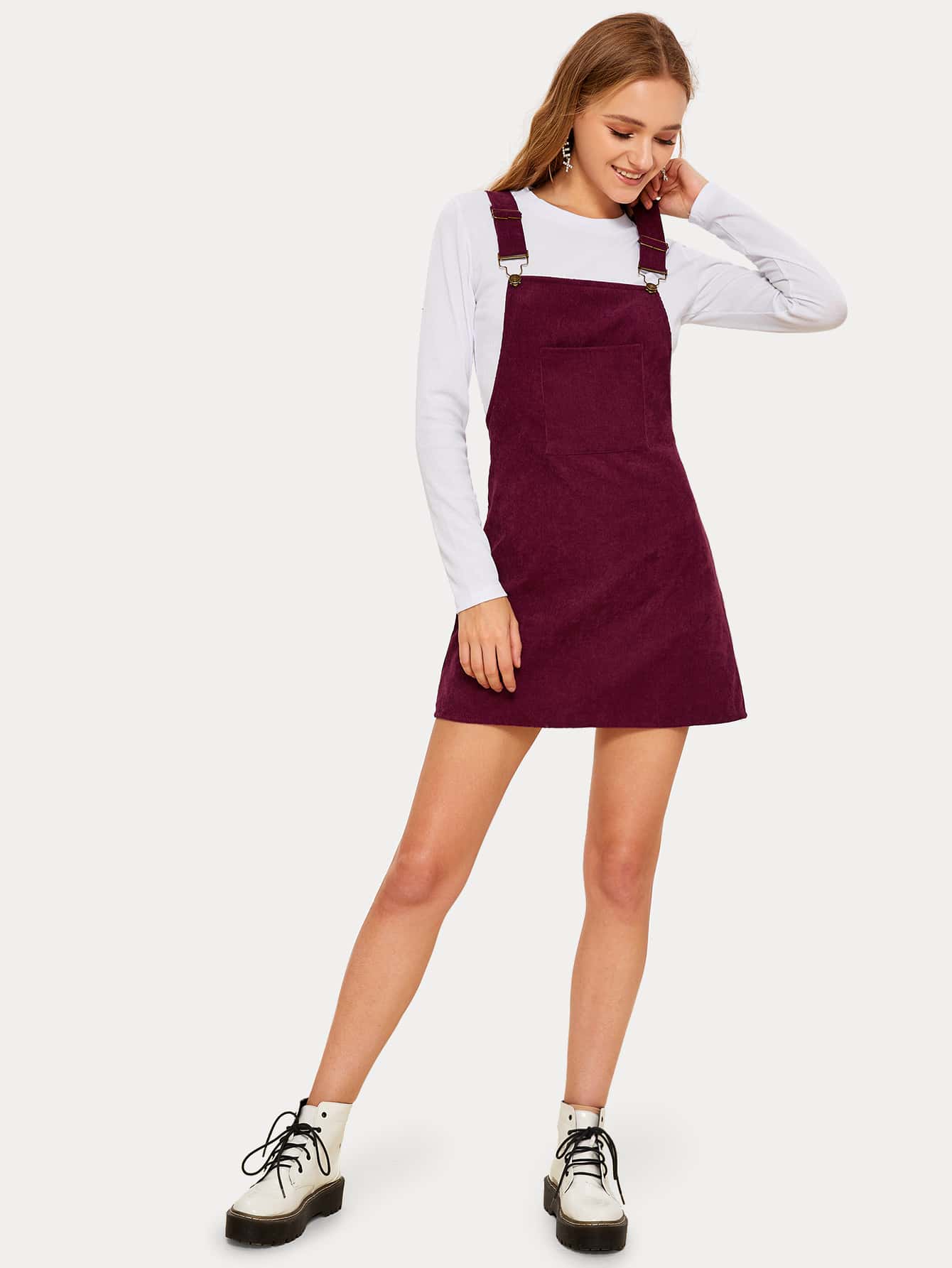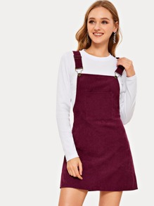 Solid Pocket Front Corduroy Pinafore Dress