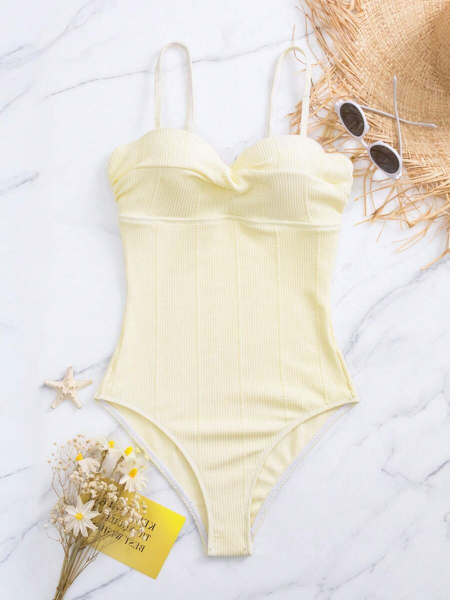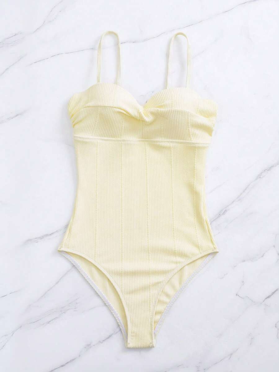 Solid Push Up One Piece Swimsuit