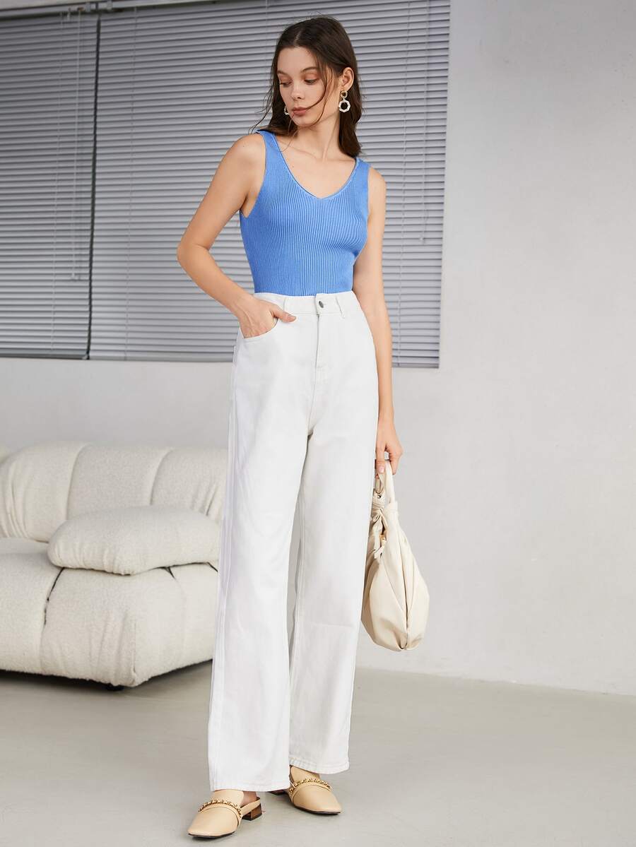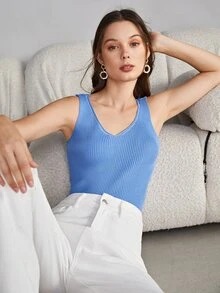 Solid Ribbed Knit Sweater Vest