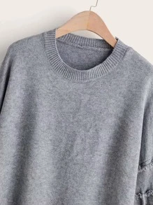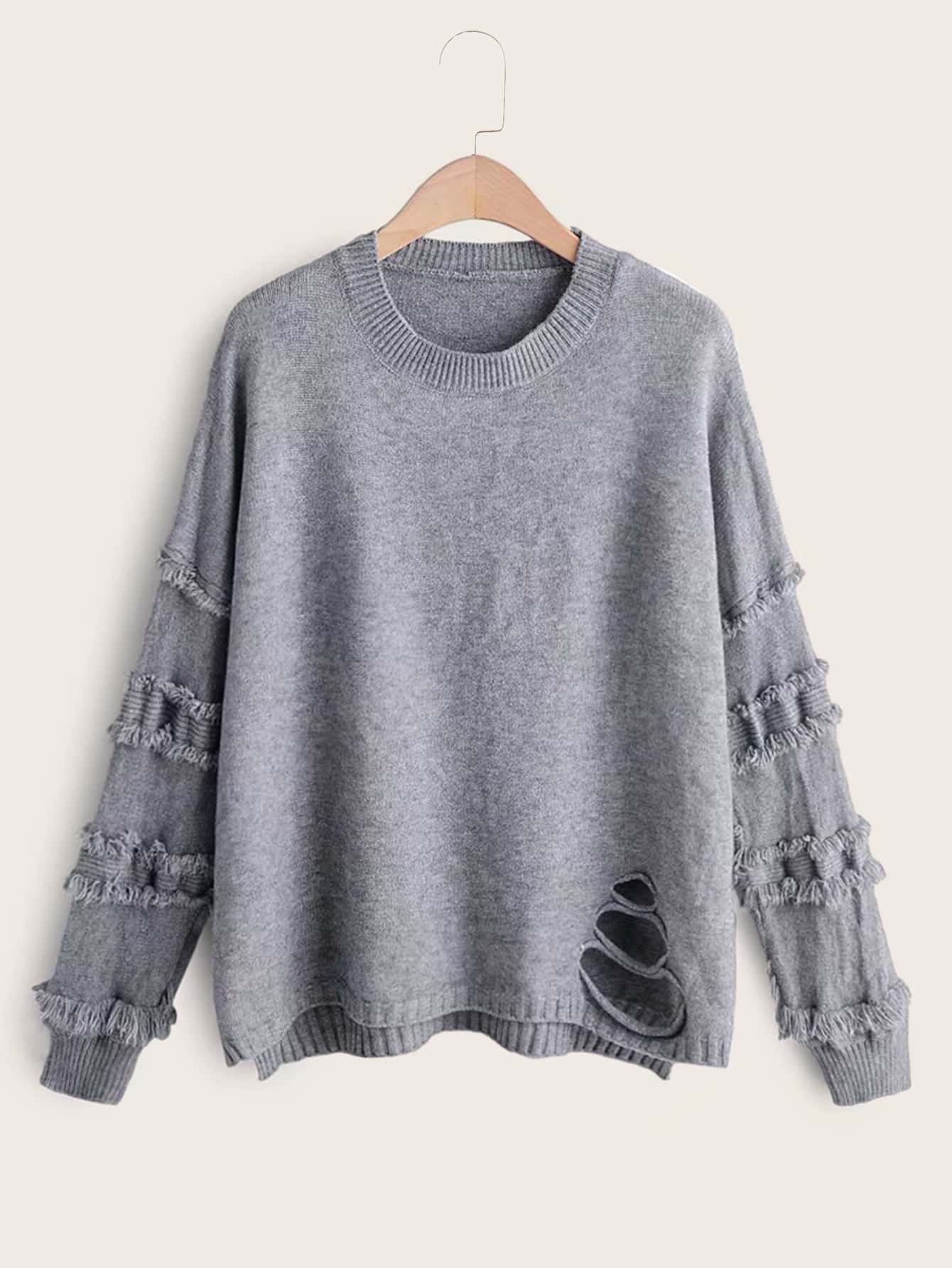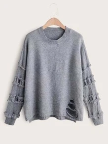 Solid Ripped High Low Hem Sweater