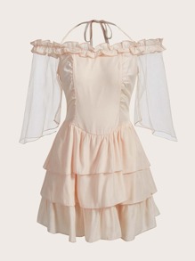 Solid Ruffle Hem Cold Shoulder Layered Hem Dress