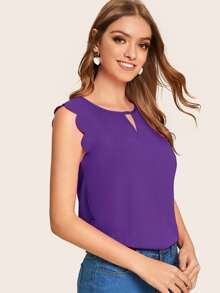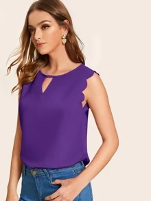 Solid Scallop Trim Peekaboo Top