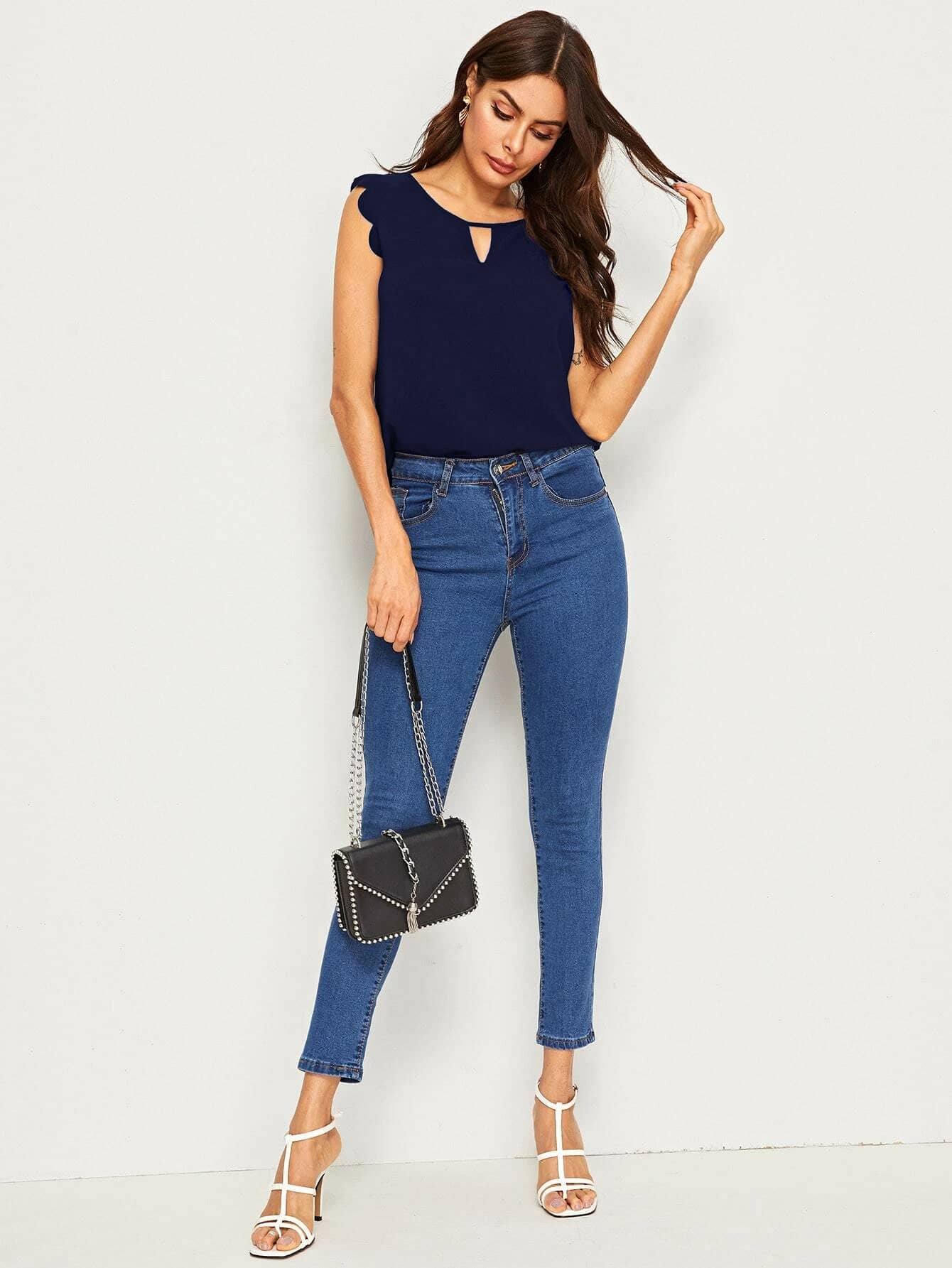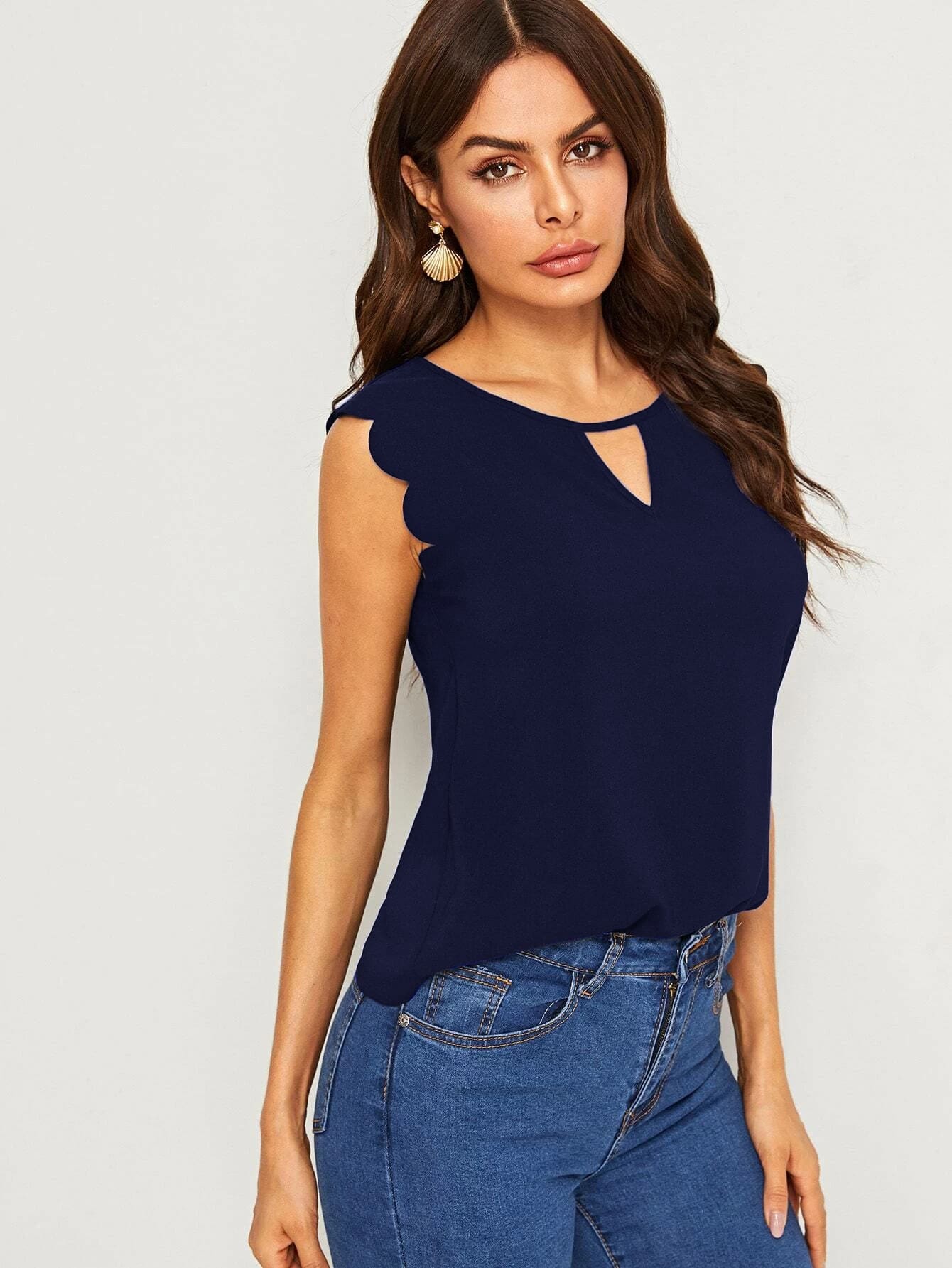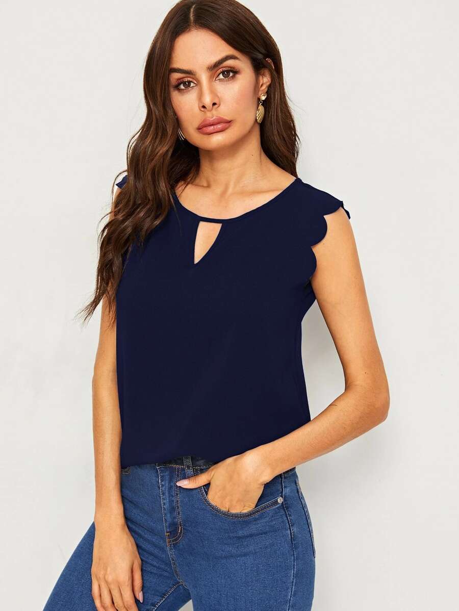 Solid Scallop Trim Peekaboo Top