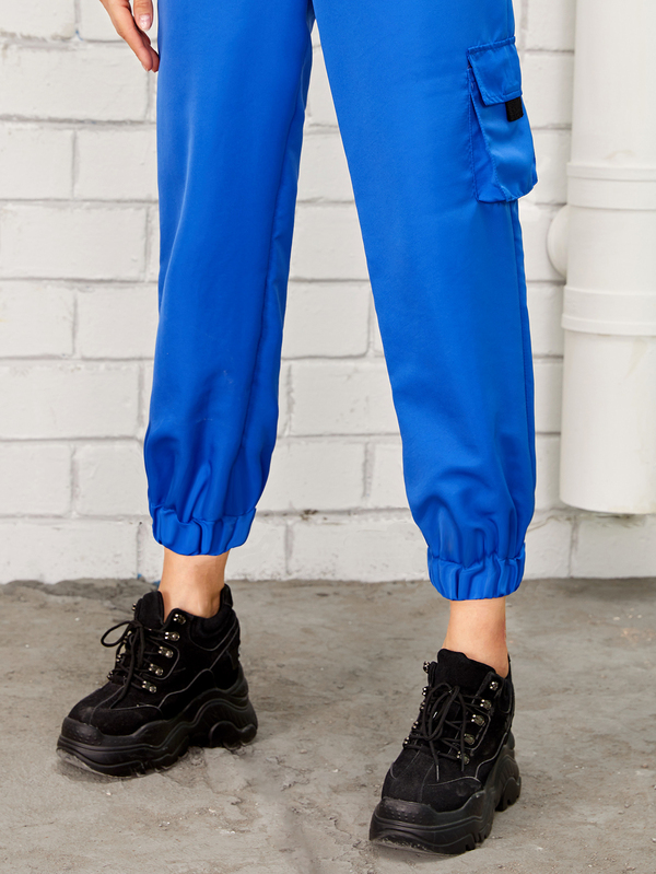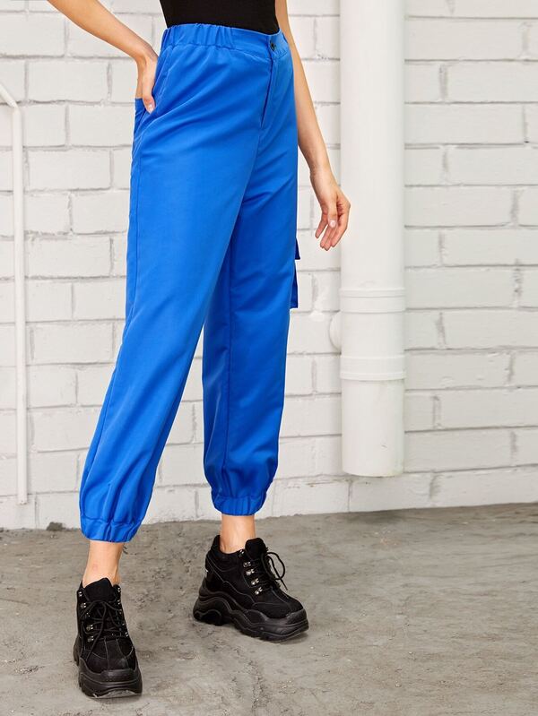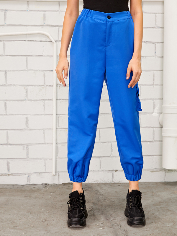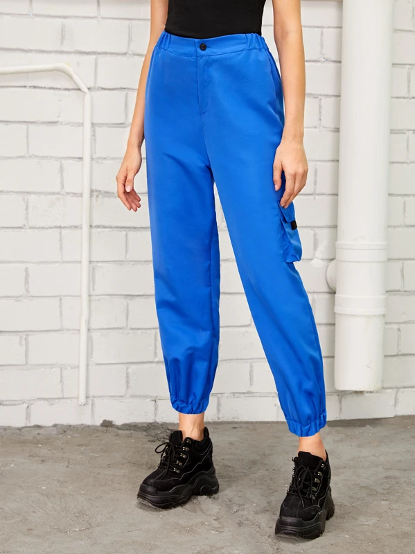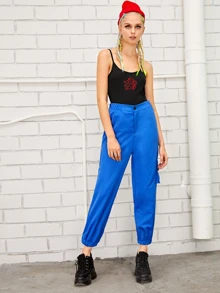 Solid Side Flap Pocket Windbreaker Cargo Pants