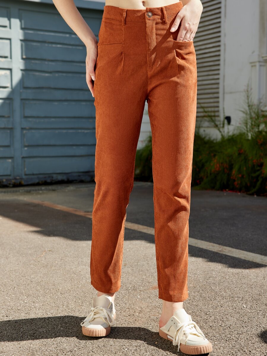 Solid Straight Leg Corduroy Pants