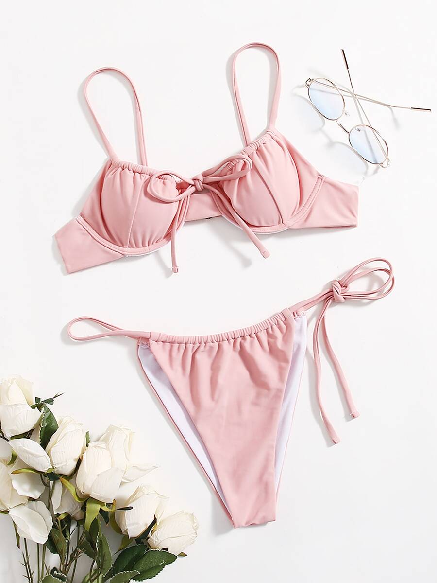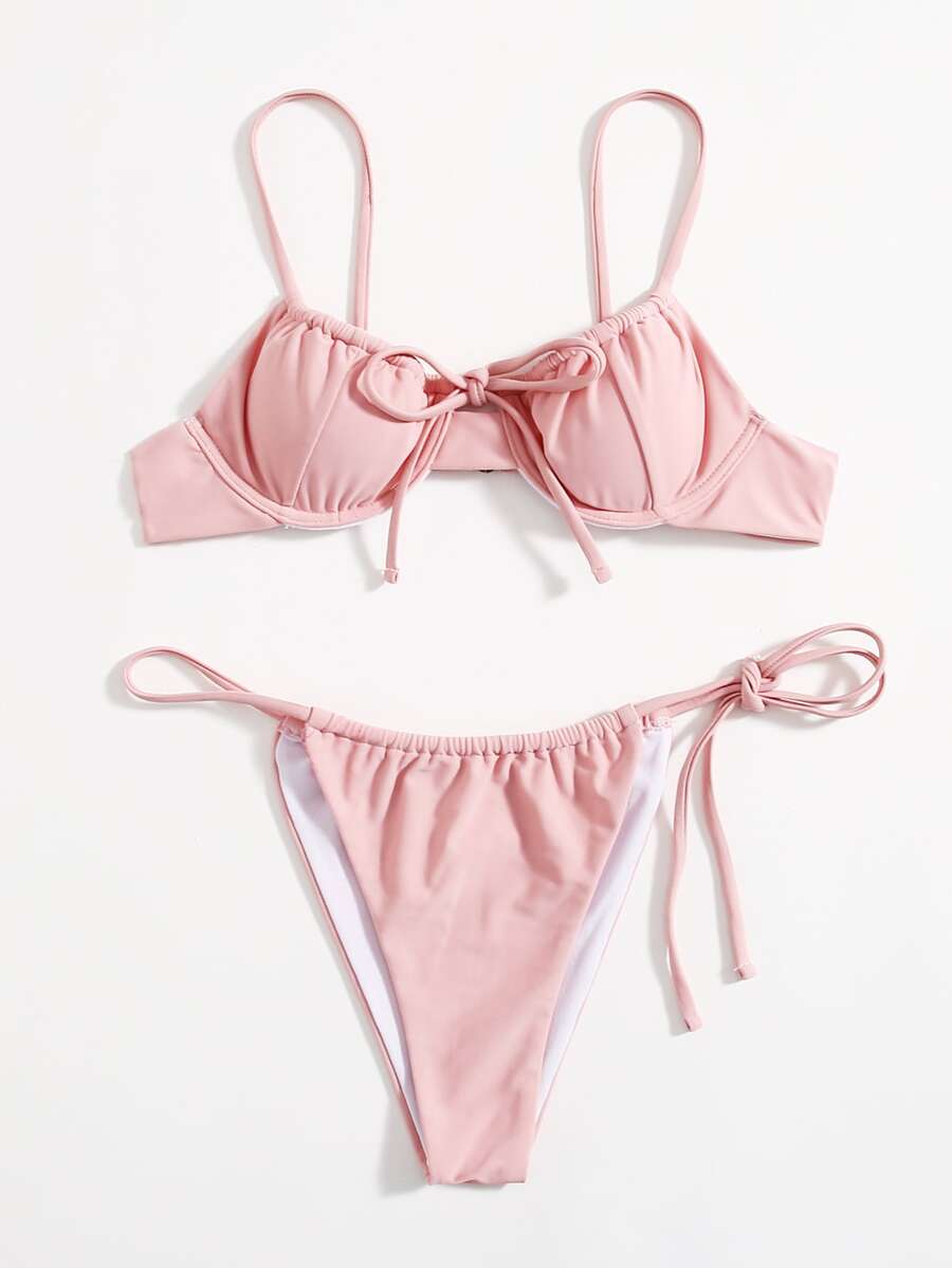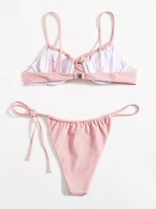 Solid Tanga Bikini Set For Summer Beach Vacation