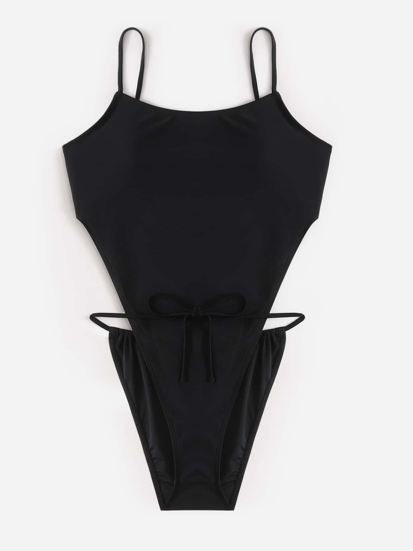 Solid Tie Front One Piece Swimsuit