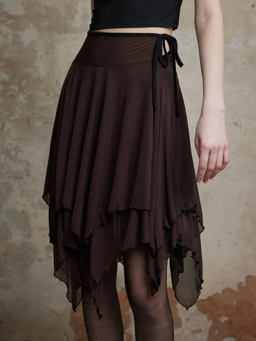 Fairycore Solid Tie Side Asymmetrical Hem Skirt