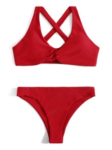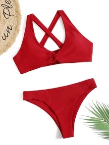 Solid Twist Bikini For Summer Beach Vacation