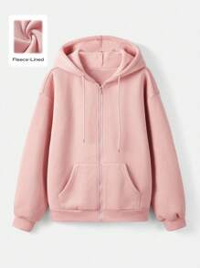 Solid Zip Up Drawstring Thermal Lined Hoodie