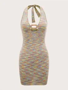 Space Dye Geo-ring Cut Out Tie Backless Halter Bodycon Dress