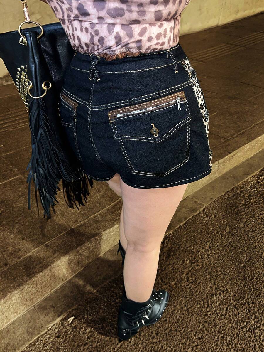 Spring/Summer J-Fashion Y2K Gyaru Sexy Leopard Print Vintage High Waisted Plus Size Women Denim Shorts Valentine's Day