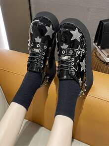 Star Pattern Lace-up Front Wedge Oxford Shoes