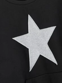 Star Print Kangaroo Pocket Drop Shoulder Sweatshirt