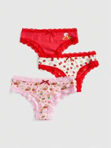 Strawberry Girl Lace Bow 3-Pack Hipster Panties